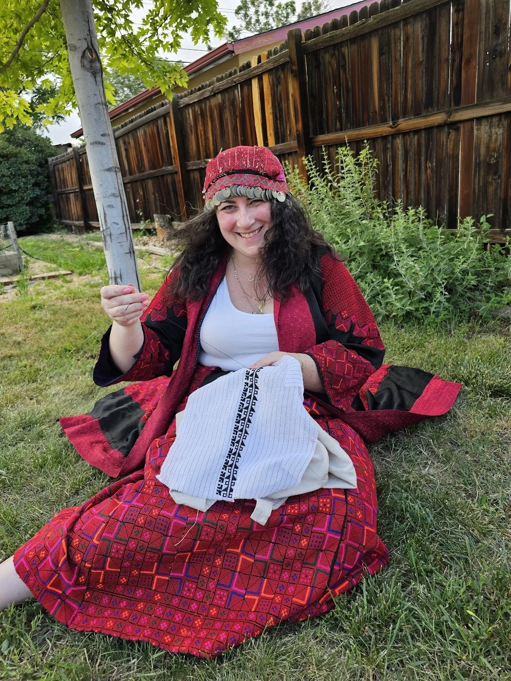 In mid-2023, after years of feeling like something was missing when she tried other embroidery styles, Michelle finally began her tatreez journey and experienced the joy of both this Palestinian art form and the magic of the community and it quickly took over.