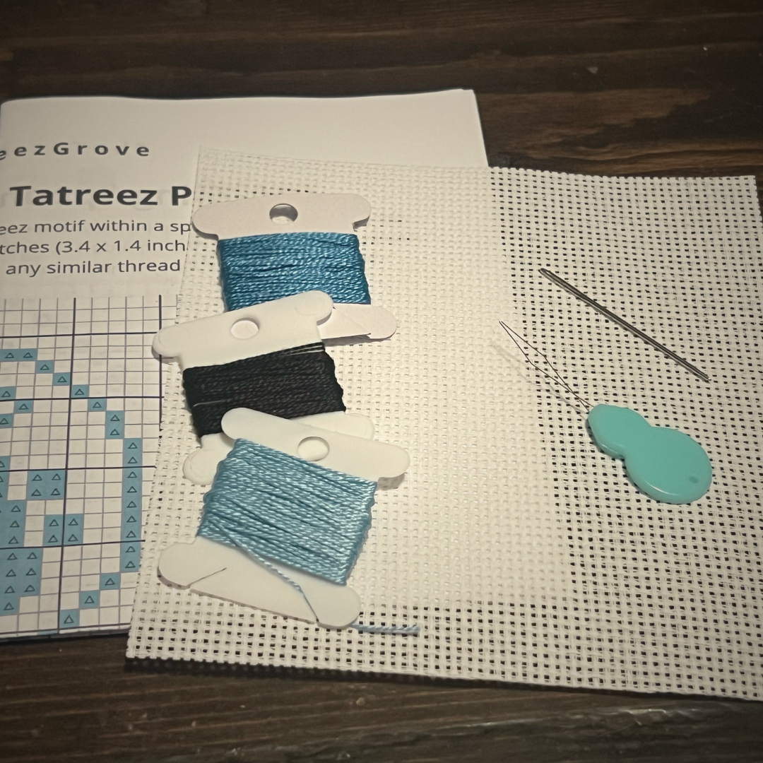 Note: I am a participant of this group art project and have their signoff, but I not directly affiliated with The Tatreez Grove. After your purchase, I will purchase another copy of the digital pattern from them using the funds from your order so they receive them. I make no profit off these kits, the additional amount covers the cost of the supplies only.